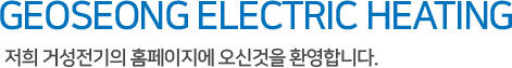 본사 및 공장 : 경기도 부천시 원미구 조마루로 385번길 122 (춘의동 삼보테크노타워 B-103호) TEL : 032-672-8478 / 032-678-8479 FAX : 032-678-4408 사업자 등록 번호 : 113-14-93587 대표 : 홍성환 Email geoseong22@naver.com COPYRIGHT © 2016 GEOSEONG Electric Heating. All Rights Reserved.